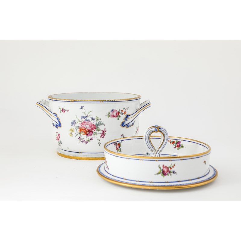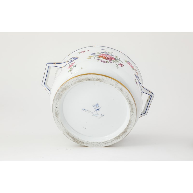 painted with flower sprays with blue and gilded borders, crowned interlaced Ls mark (2)