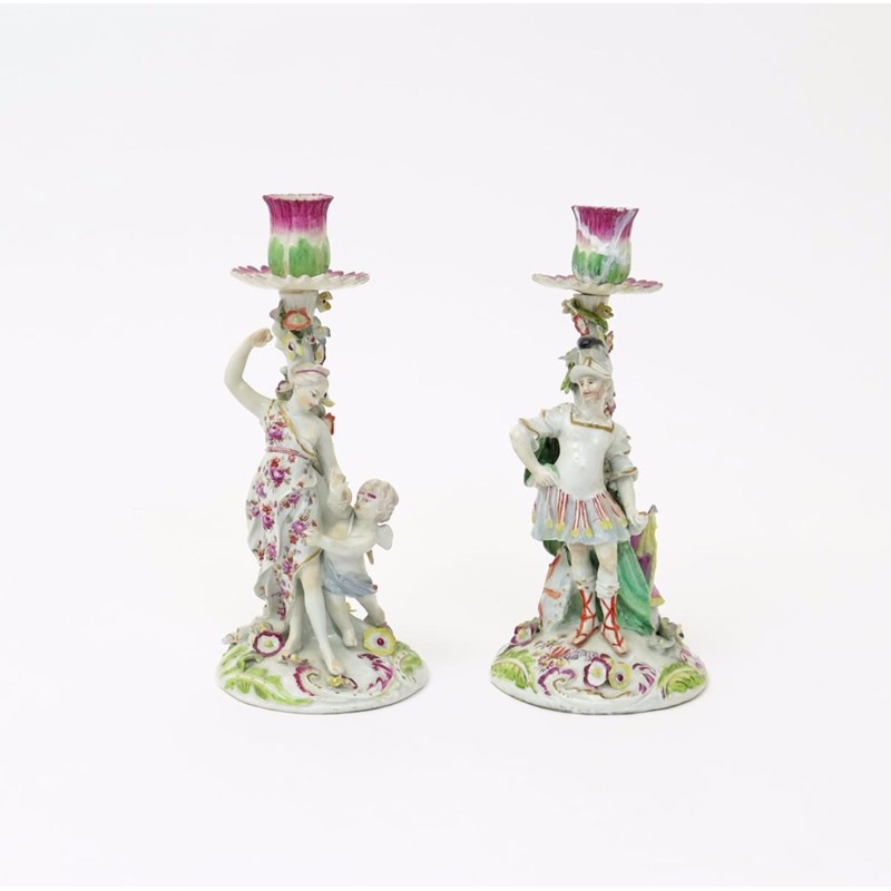 A pair of Derby candlestick figures of Venus and Mars c.1760