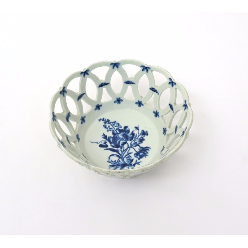 A rare Worcester blue and white basket c.1762
