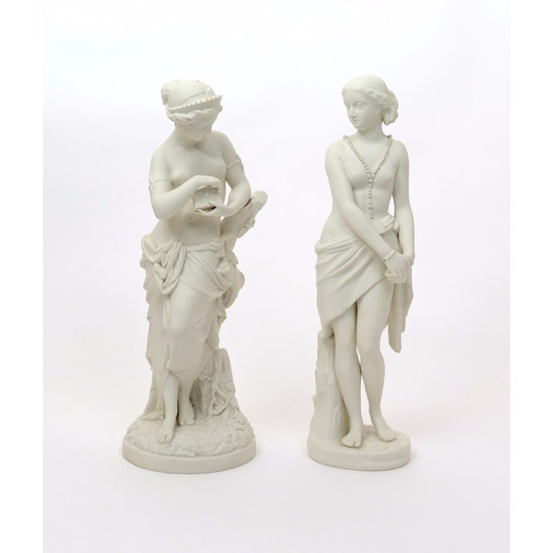 Two Minton Parian figures of Classical maidens date codes for 1865 and 1883