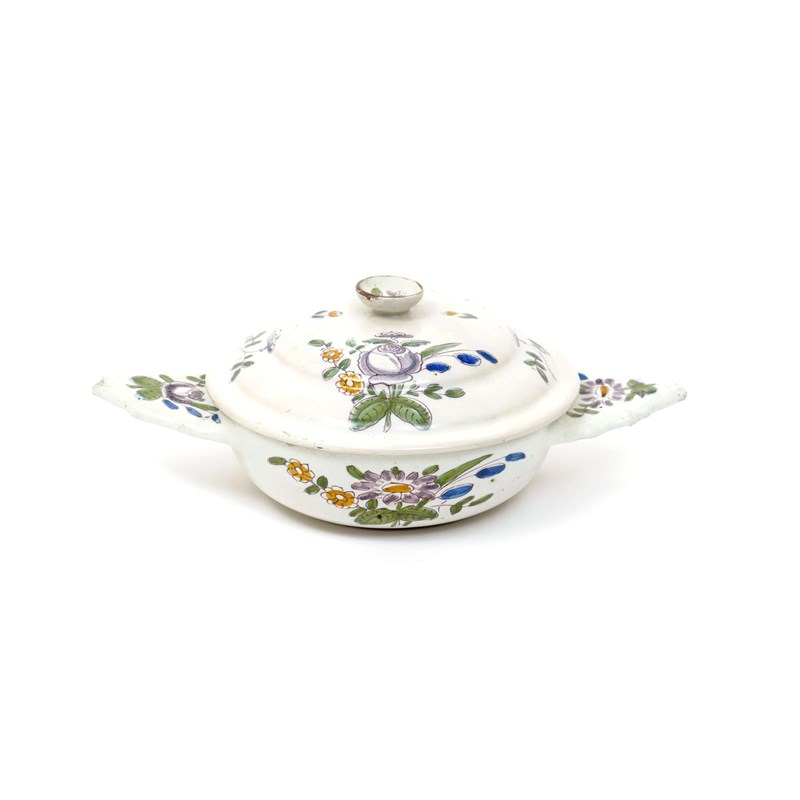 A Moustiers faïence ecuelle and cover c.1760