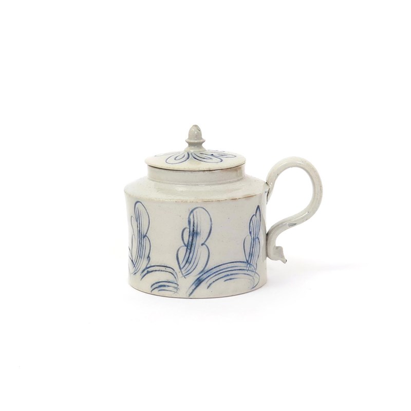 A salt-glazed stoneware mustard pot and cover c.1760