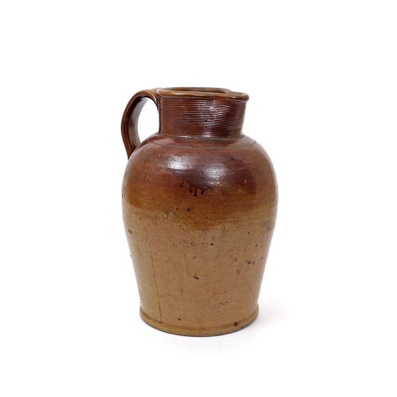 A large brown stoneware jug the generous ovoid body rising to a straight neck and pinched spout...