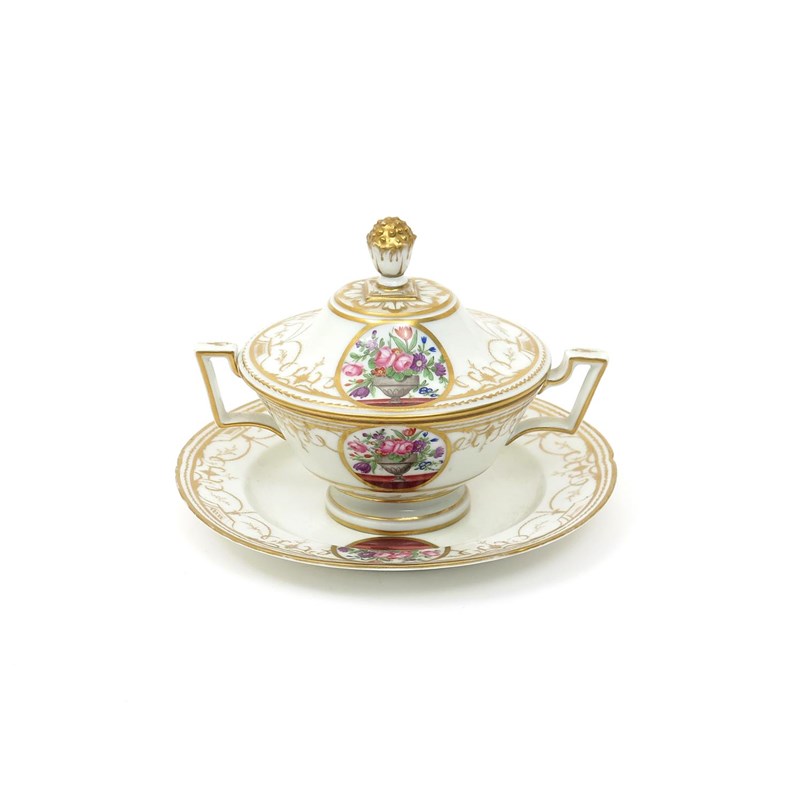 A Paris porcelain (Nast) ecuelle with cover and stand late 18th century