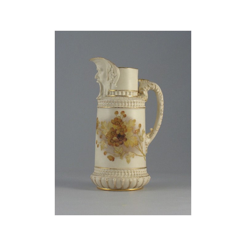 A Royal Worcester mask jug, decorated with yellow blossom, c.1890, 20cm.