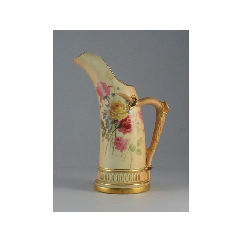 A large Royal Worcester tusk jug, decorated with roses, c.1901, 28cm.