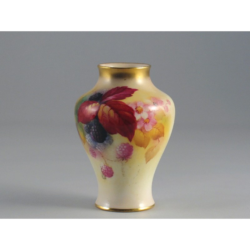 A small Royal Worcester vase, painted by and signed 'K. Blake' , with a blackberry spray, c.1931, 10.5cm.