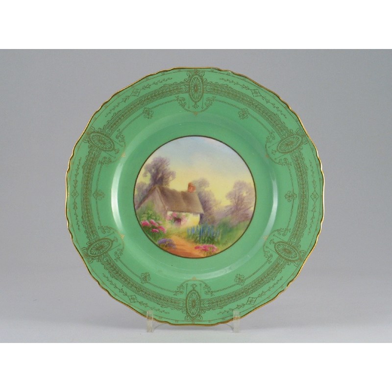 A Royal Worcester plate, painted with a cottage scene, signed '? Rushton', 20th century, 23cm.