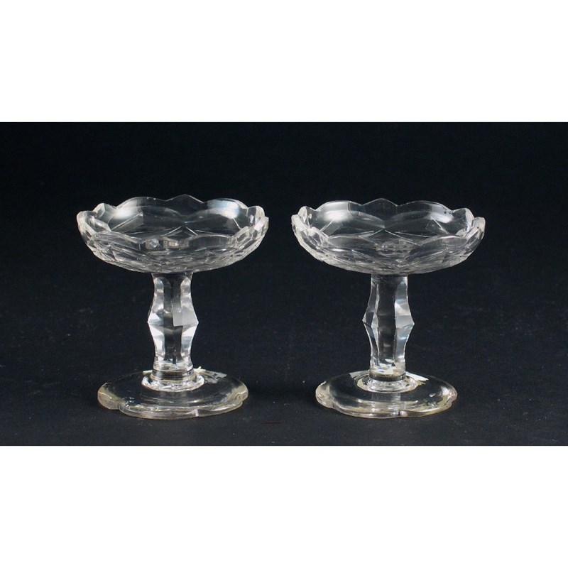 A small pair of faceted glass stands, c.1770, 7.5cm. (2)