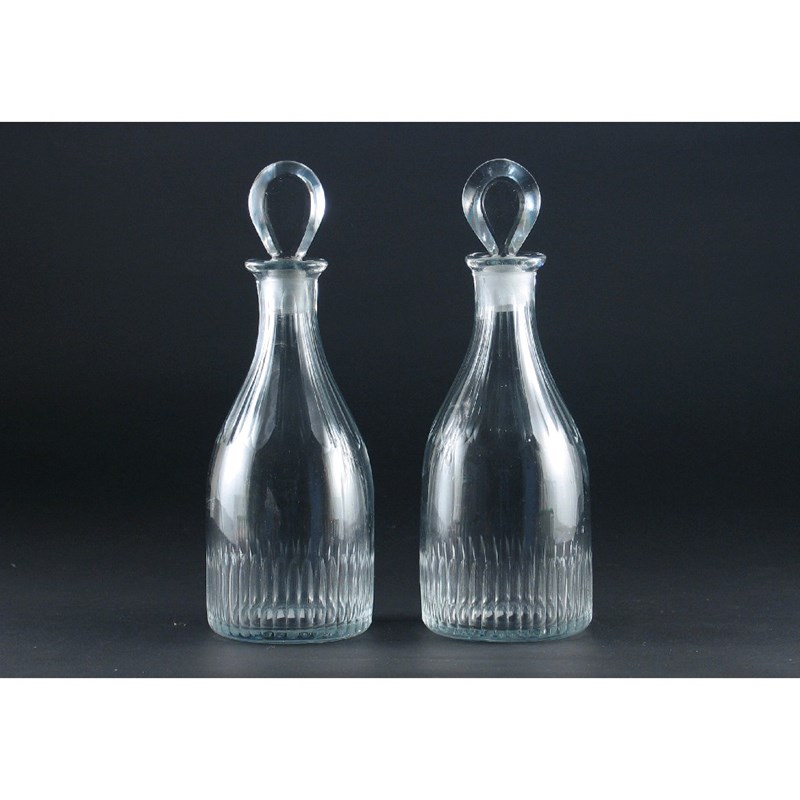 A pair of decanters and stoppers, with faceted shoulders and flutes around the bases, 19th century, 24.5cm. (4)