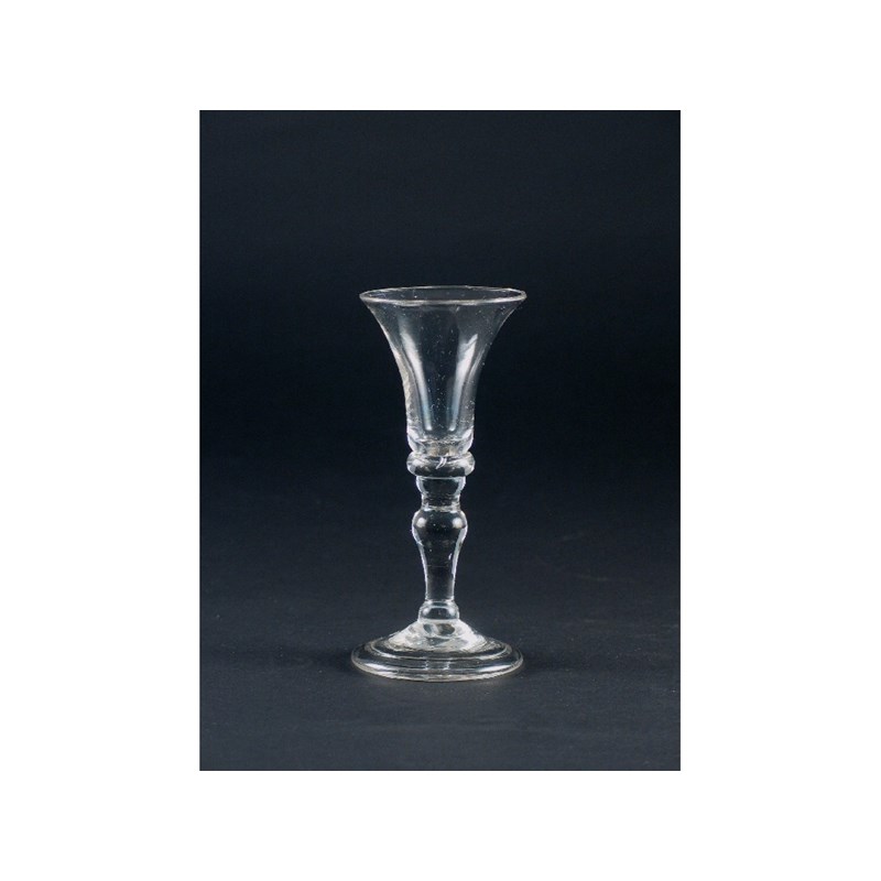 A gin glass, with a flared bowl on a baluster stem and folded foot, 18th century, 12.5cm.