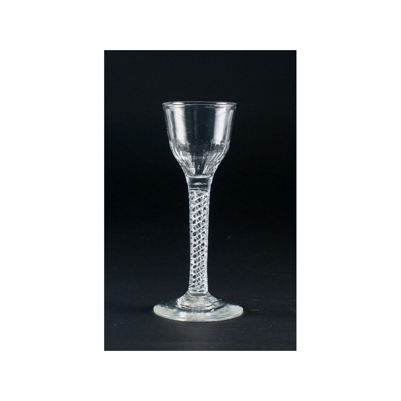 A wine glass, the part moulded bowl on a hollow mercury twist stem, c.1760, 15.1cm.