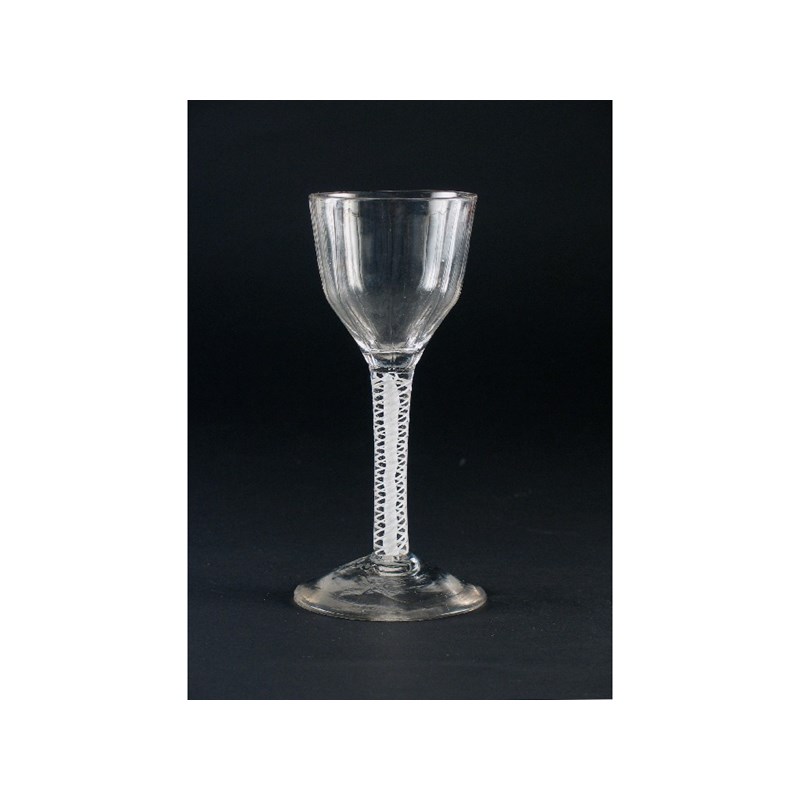 A wine glass, the bowl moulded with ribs on a double series opaque twist stem, c.1770, 15.5cm.