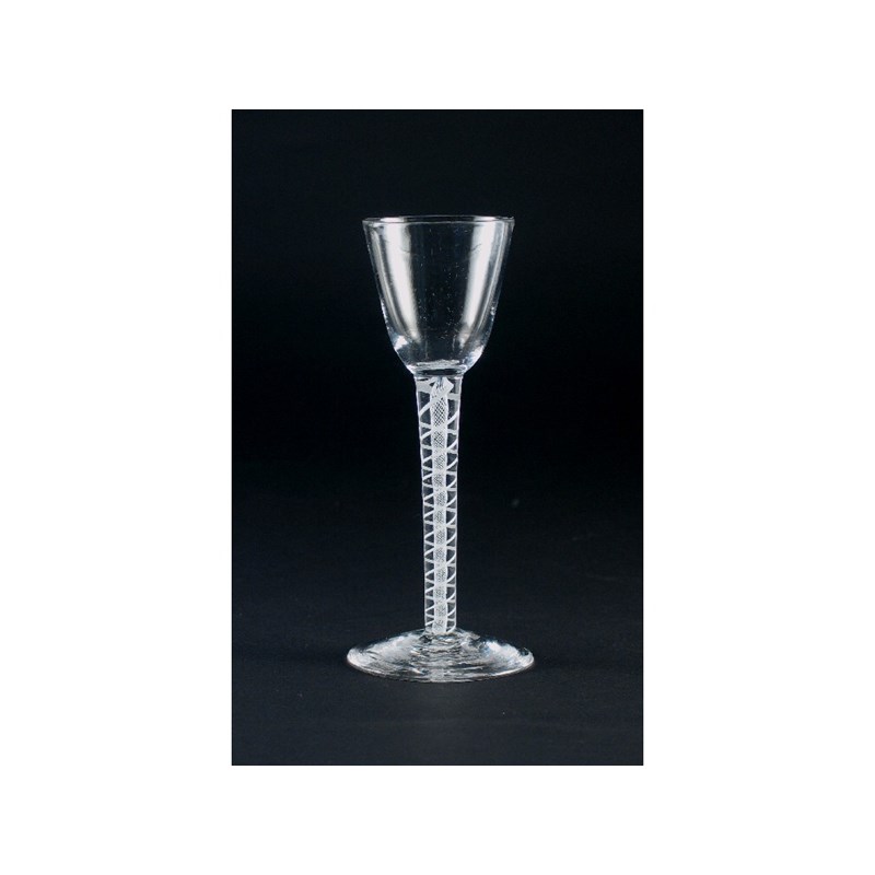 A wine glass, with a rounded bowl, on a double series opaque twist stem, c.1770, 15.3cm.