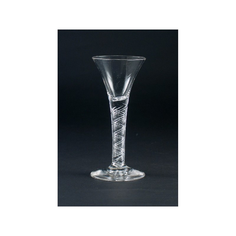 A wine glass, with a trumpet bowl on an air twist stem, c.1760, 16.3cm.