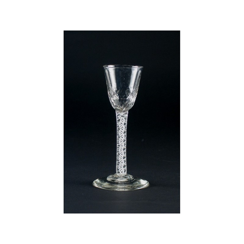 A wine glass, with a part-moulded bowl on a double series opaque twist stem, c.1760-70, 14.8cm.