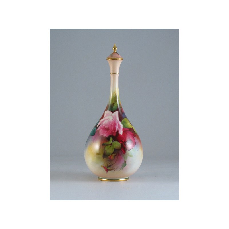 A Royal Worcester onion shaped vase and cover, painted with roses, signed 'J Southall' c.1911, 24cm. (2)