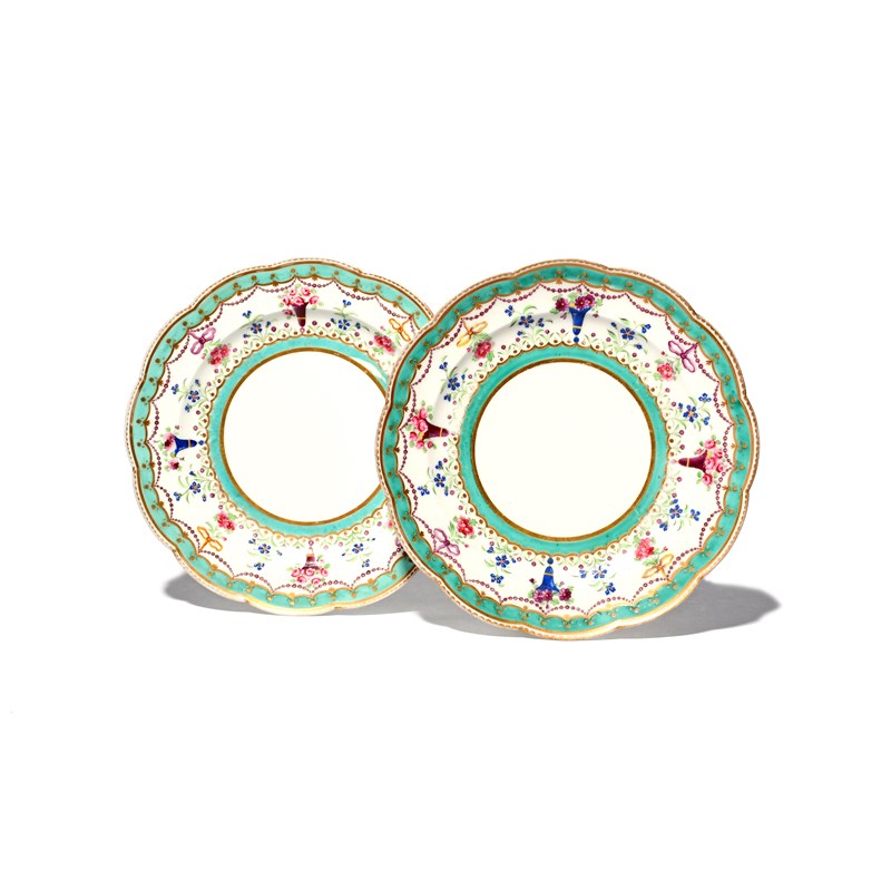 These plates probably relate to a service produced in 1787-89 and held in stock until 1794.