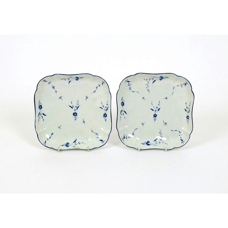 A pair of Chantilly square blue and white dishes c.1770