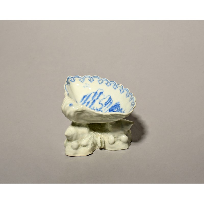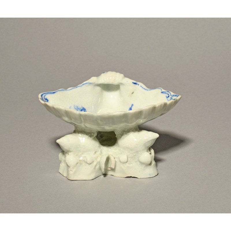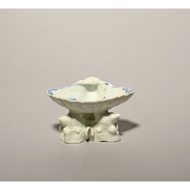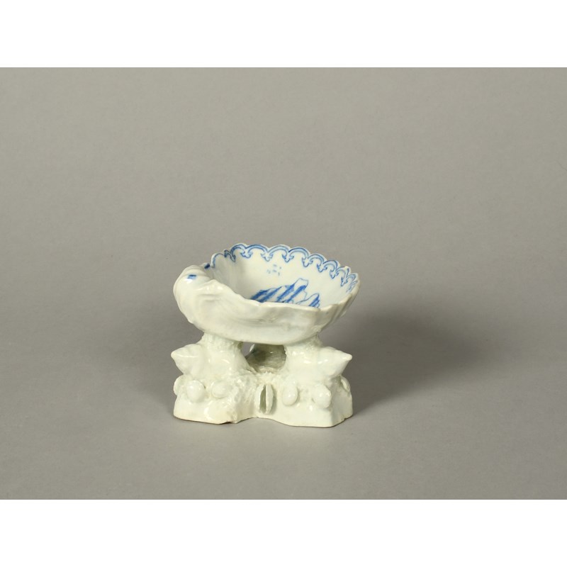 An early Bow blue and white shell salt