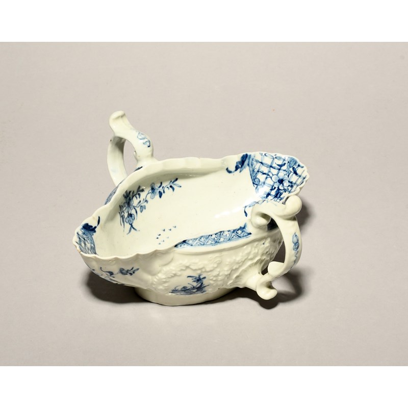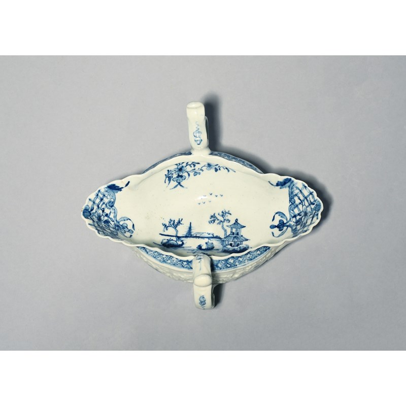 A Worcester blue and white double-ended sauceboat