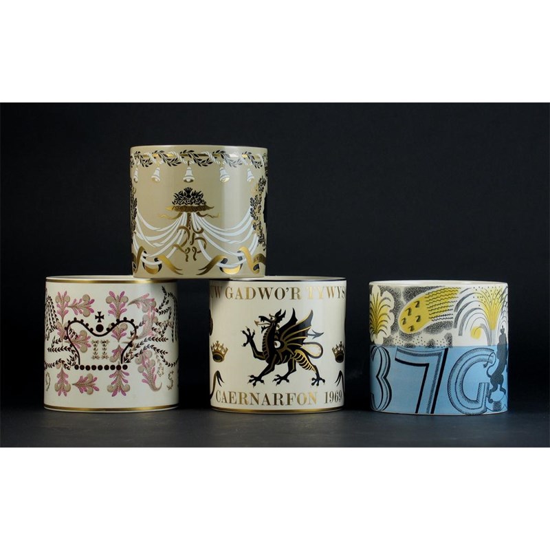 Four Wedgwood commemorative mugs, one designed by Eric Ravilious for the 1937 coronation, the others designed by Richard Guyatt, 1953, 1969 and 1972, 10.5cm. (4)