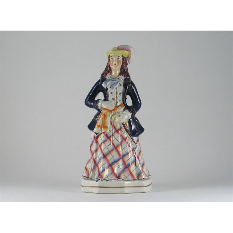 A Staffordshire model of Diana Vernon as an equestrian lady, holding a whip, mid 19th century, 31cm.
