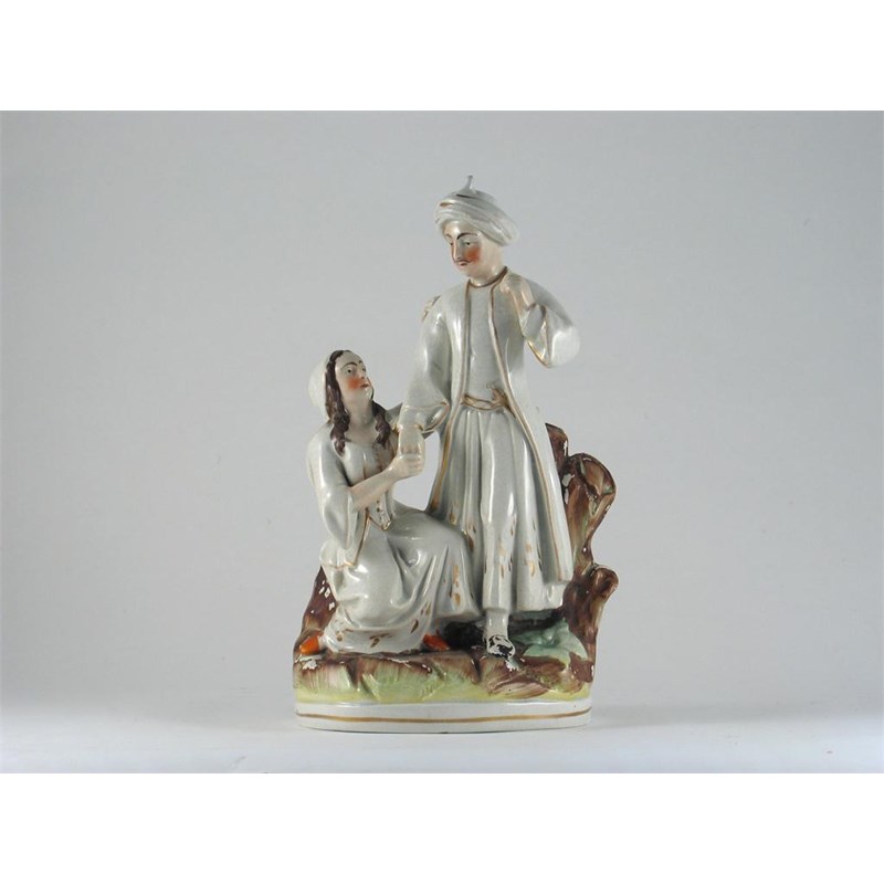 A Staffordshire model of Mr Harwood and Miss Rosa Henry, as Selim and Zulieka in the bride of Abydos, 19th century, 27.5cm. Cf. Pugh, p.379.