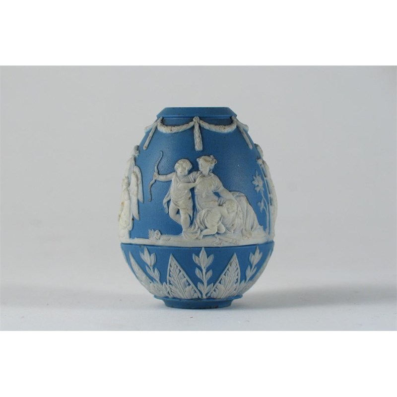 A blue Jasperware bell pull, decorated with a frieze of classical figures, unmarked, probably Wedgwood, 19th century, 5.5cm.