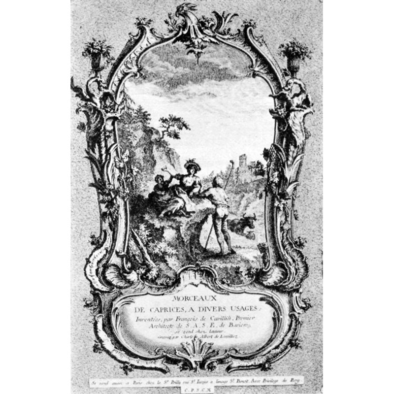 The figures are copied from an engraving by Charles Albert von Lespiliez after François de Cuvilliés in Morceaux de Caprice. See Frank Britton, London Delftware, p.161 for a similar example and a copy of the print from which it derives.