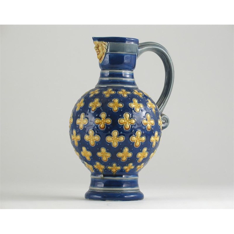withdrawn forgery A Minton Majolica jug, simulating German stoneware, date code for 1871, 21cm.