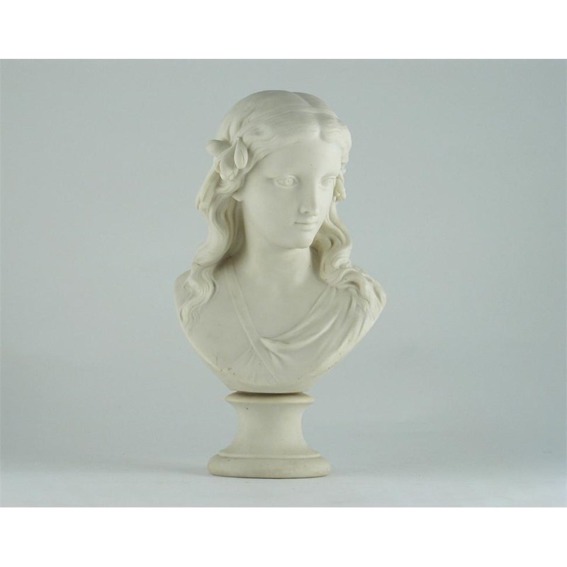 A Copeland Parian bust of Spring, sculpted by L.A.Malempr?, impressed marks including publication date of 1870, 31cm. Cf. Richard Dennis, The Parian Phenomenon, p.182.