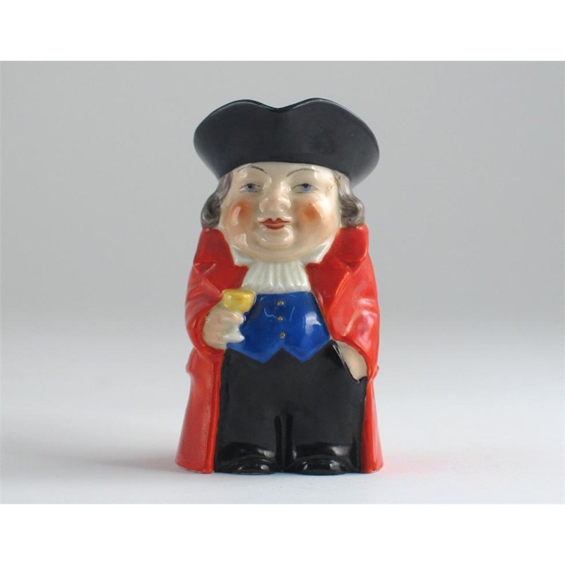 A Royal Worcester miniature Toby jug, standing wearing a red coat and holding a goblet, printed mark and date code for 1931, 9cm.