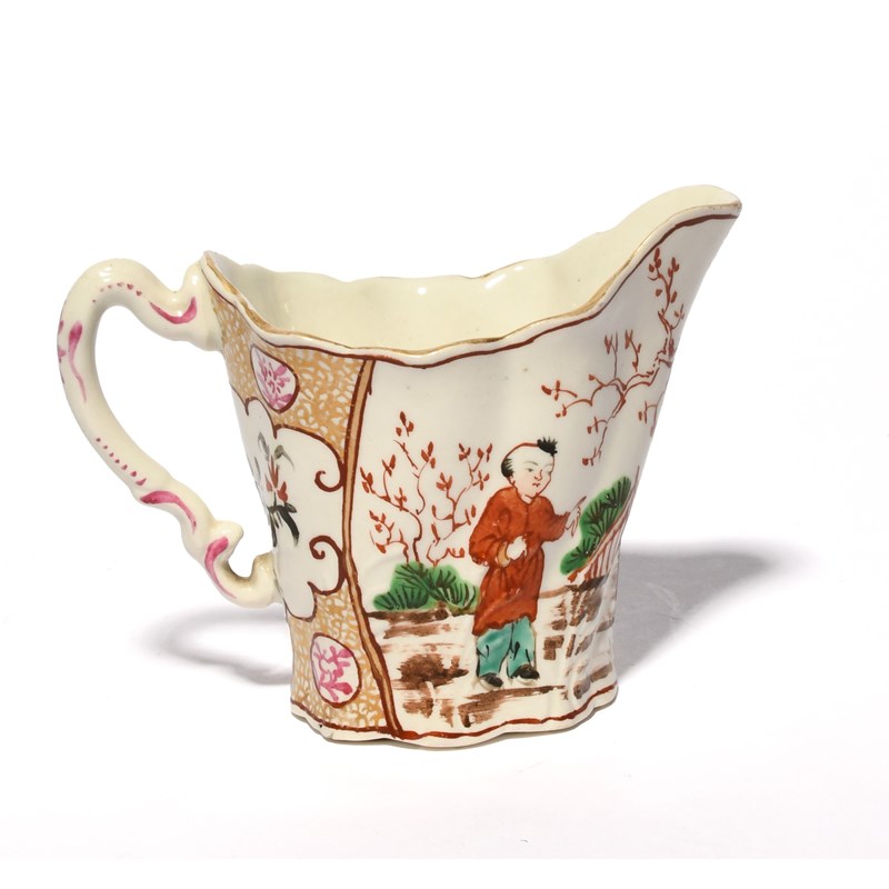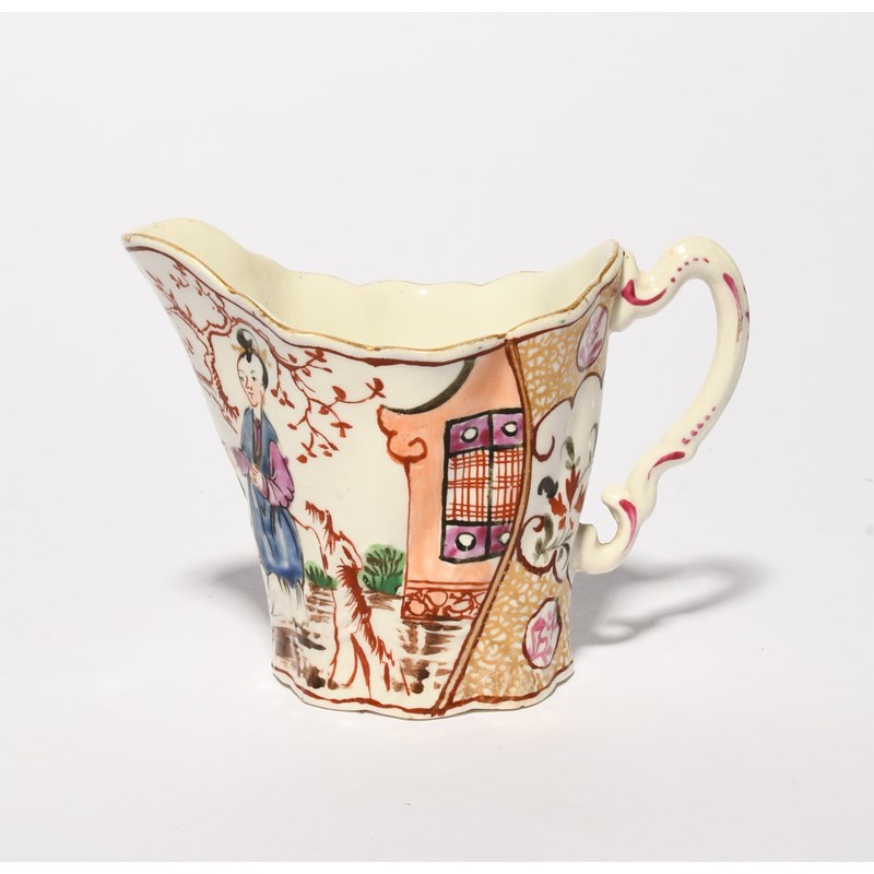 A Worcester 'Chelsea Ewer' shape milk or cream jug, c.1770-75, painted in the Mandarin manner with a