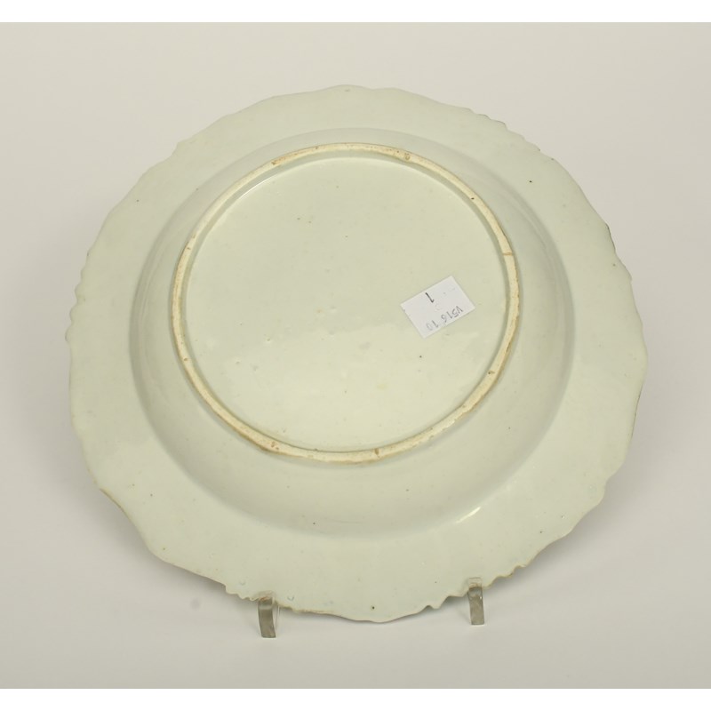 A Longton Hall strawberry soup plate or shallow bowl, c.1756, the rim moulded and painted with large
