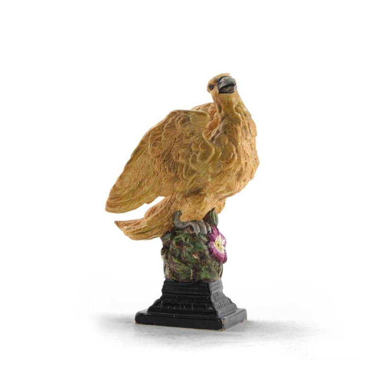 A Staffordshire pearlware model of an eagle early 19th century, standing on a flowered stump with wings unfurling, its head arched back, some good restoration, 20cm.
