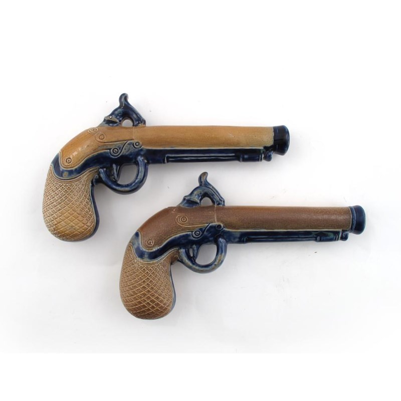 A pair of stoneware pistol flasks 19th century