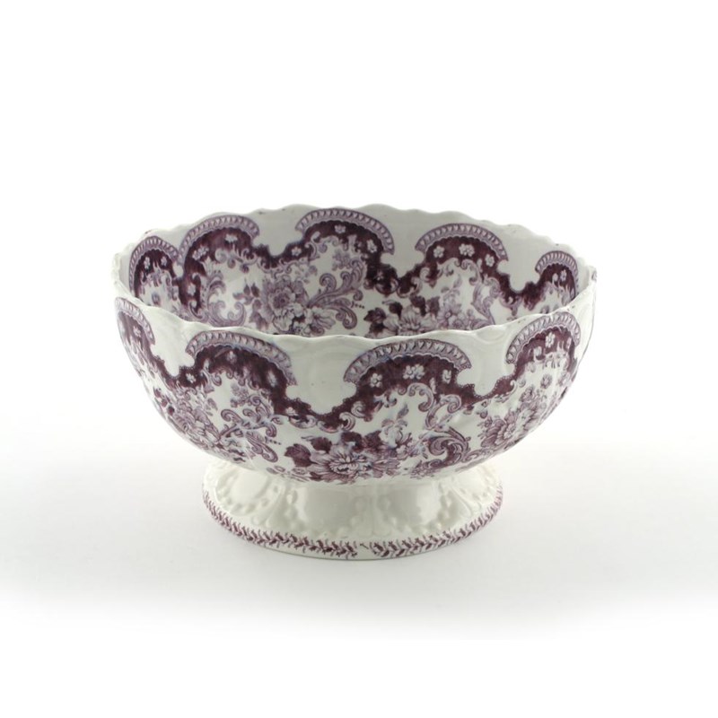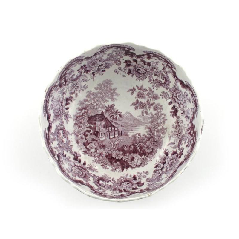 A good Cambrian pottery footed bowl c.1830-40, printed in purple with the Swiss Villa pattern, moulded to the exterior, 22.5cm dia.