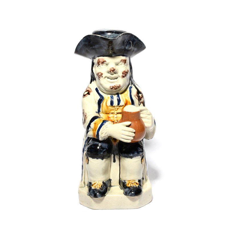 An Ordinary Toby jug and stopper, c.1800, seated with a foaming jug of ale and a long-stemmed pipe,
