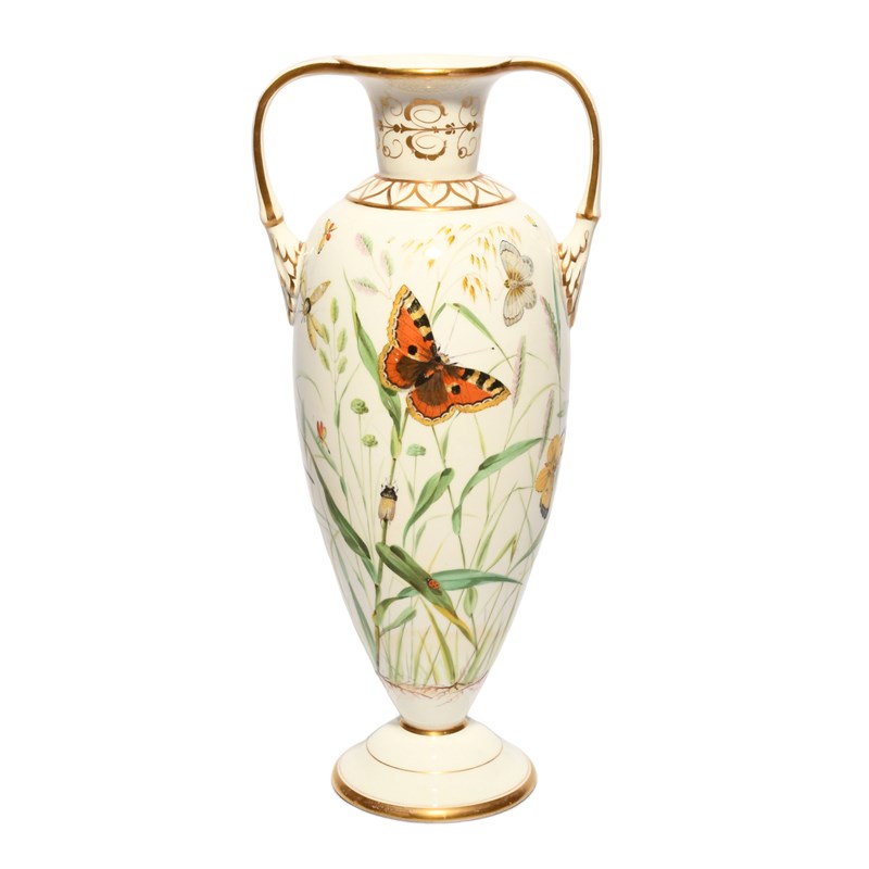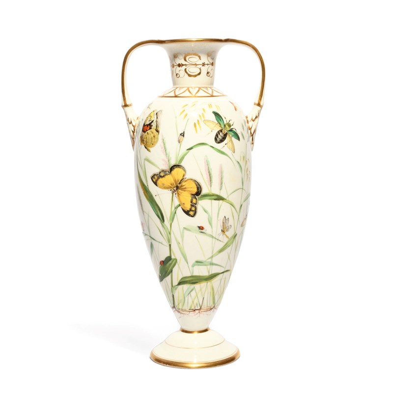 A fine Staffordshire porcelain vase, 1st half 19th century, well painted with butterflies,