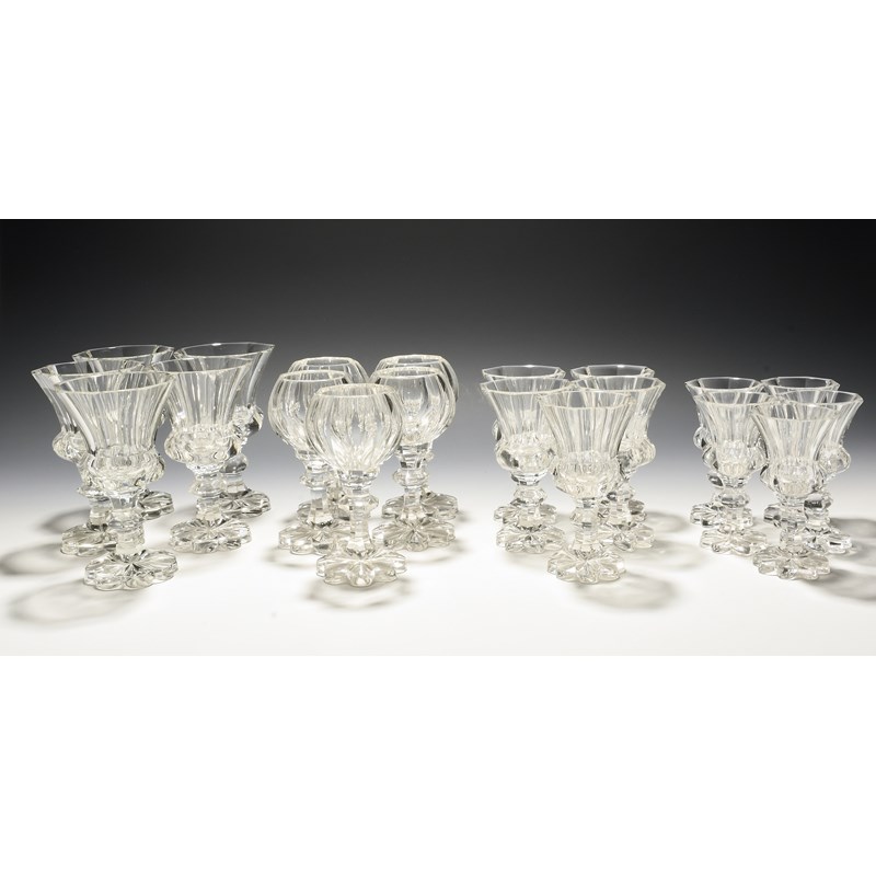 A large suite of glass, 19th century, with octagonal cut bowls raised on knopped faceted stems over