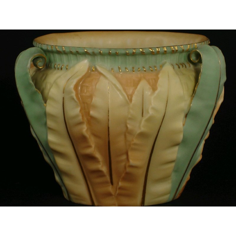 A Royal Worcester vase, modelled with vertical leaves printed marks 12.5cm. high