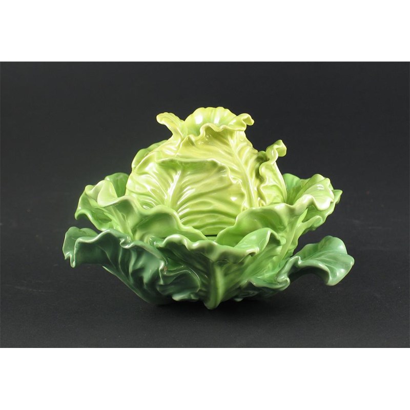 A Meissen box and cover, modelled as a green cabbage, cancelled crossed swords mark. Some restoration. 15cm. (2)
