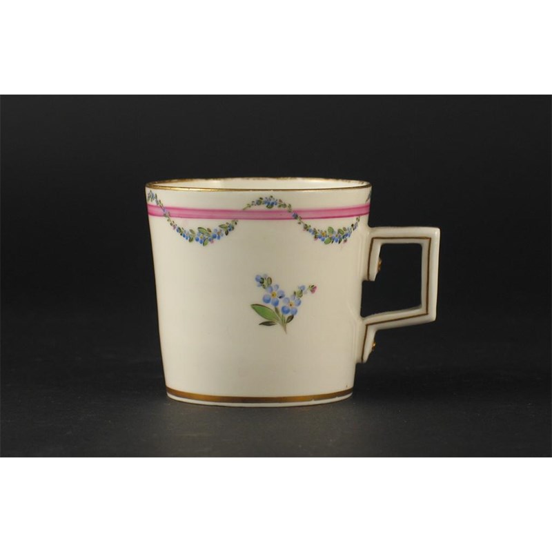 A Gotha coffee can, decorated with flowers and an angled handle, 'R.G' mark, c.1780.
