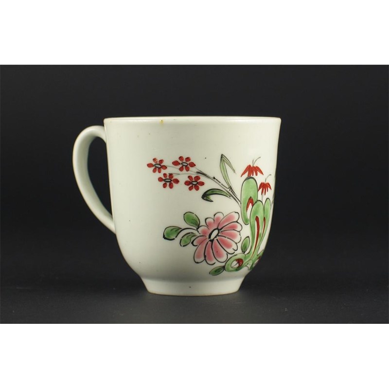 A good Gilbody coffee cup, painted in green, iron red, pink and black with flowers and bamboo issuing from rocks, c.1755-60.