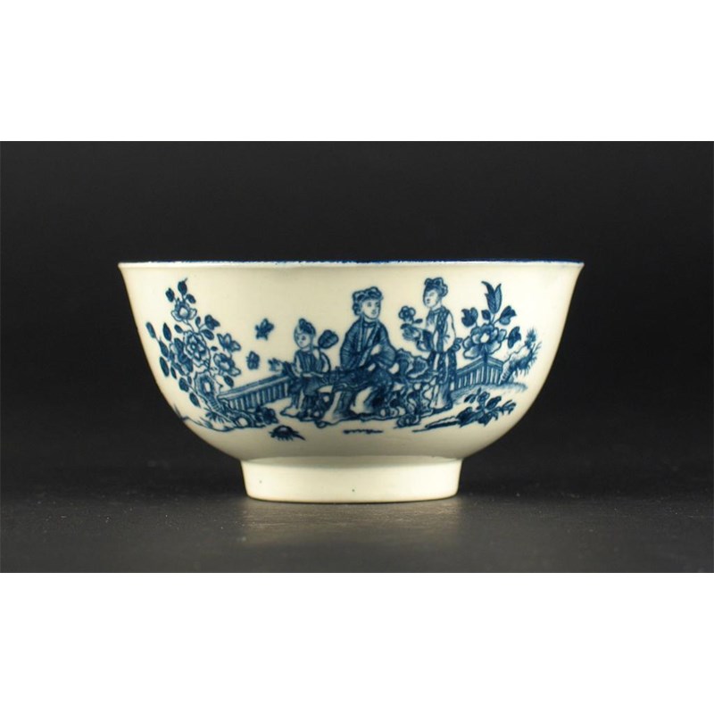A small Worcester blue and white bowl, printed with the 'Three Ladies' pattern, 'W' mark, c.1770, 10.3cm.