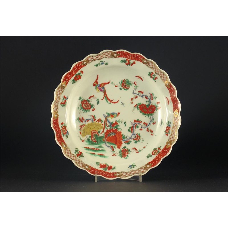 A Worcester plate, decorated with the 'Phoenix' pattern, unmarked, c.1770, 19.5cm. Cf. Spero & Sandon, The Zorensky Collection, no.298.