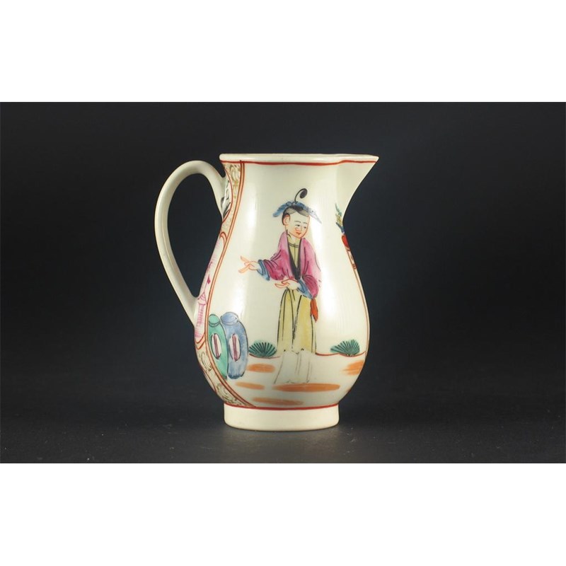 A Worcester sparrow beak jug, painted with two Chinese figures, unmarked, c.1760-70, 9.2cm. Ex. Roderick Jellicoe