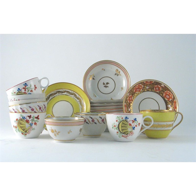 Seven English porcelain cups, five teabowls, a milk jug and twelve saucers, all early 19th century. (25)