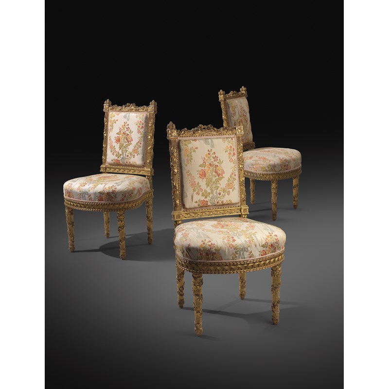 A SET OF THREE FRENCH GILTWOOD SIDE CHAIRS IN LOUIS XVI STYLE AFTER THE MODEL BY GEORGES JACOB